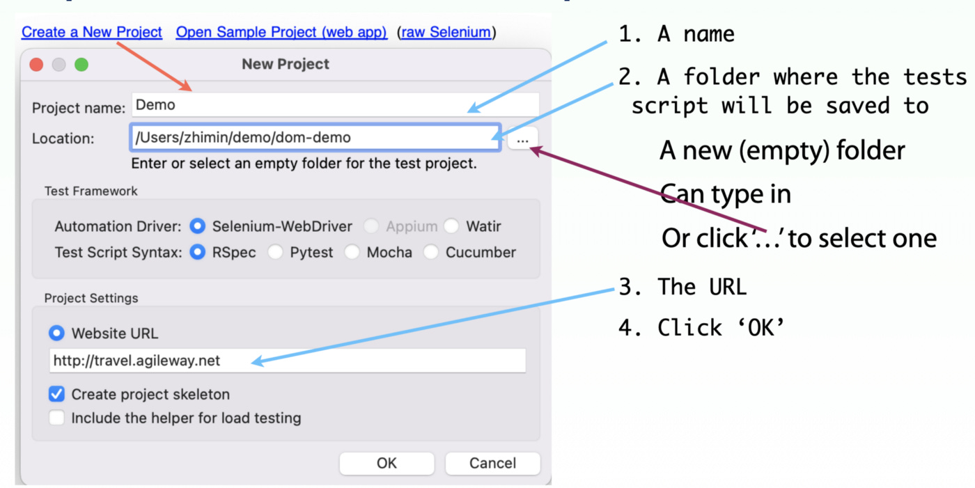 A project folder where the test scripts and related files are stored. I suggest you create an empty folder and type (or paste) its full path there, e.g.