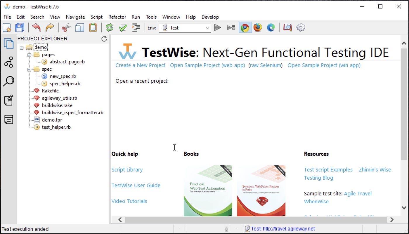 So far, the test script steps have been saved in new_spec.rb , the sample file created by TestWise.