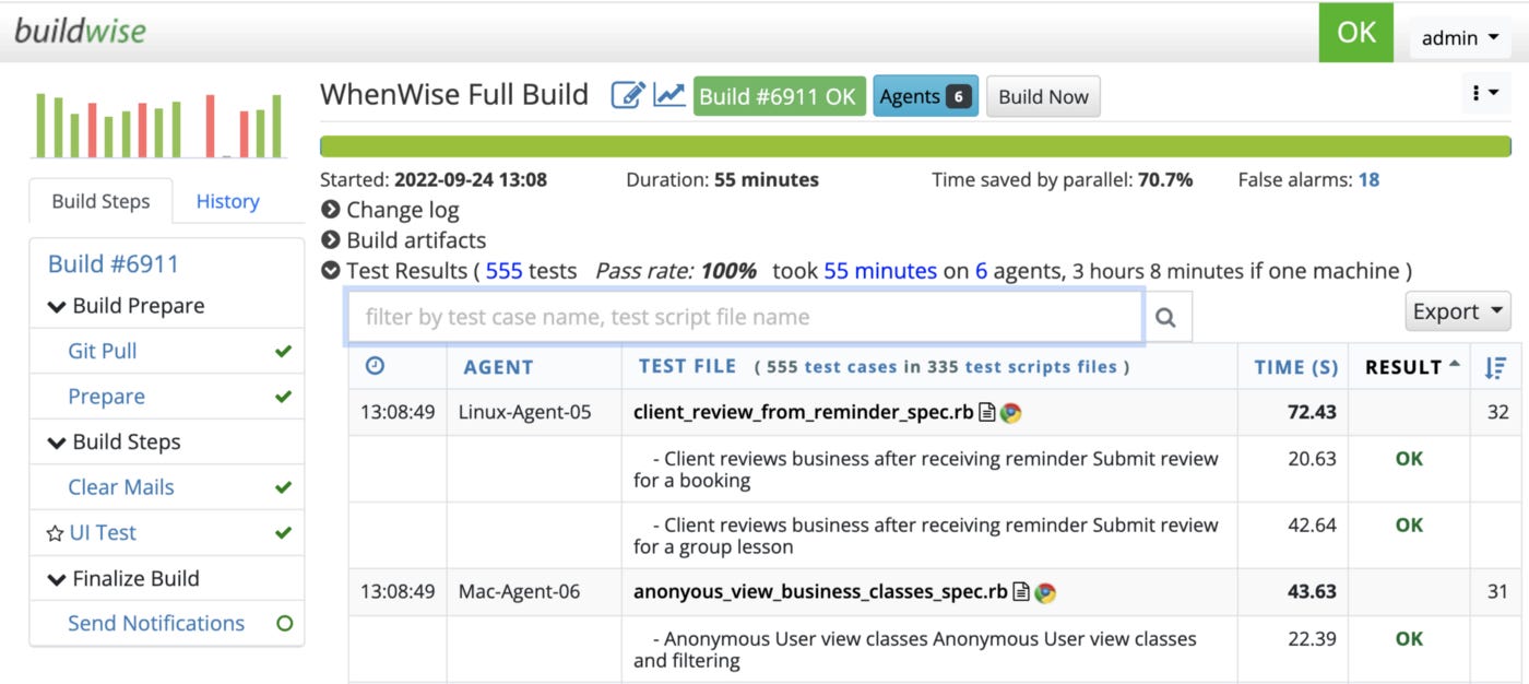 In terms of the number of software deployments, I probably have done thousands over the last 15 years. If I get the green build (passing all end-to-end testing on the BuildWise CT server), I deploy it to production immediately. I trust my automated testing process. (Is there any other way to achieve daily production such as Facebook’s ‘twice release a day’, I doubt it?)